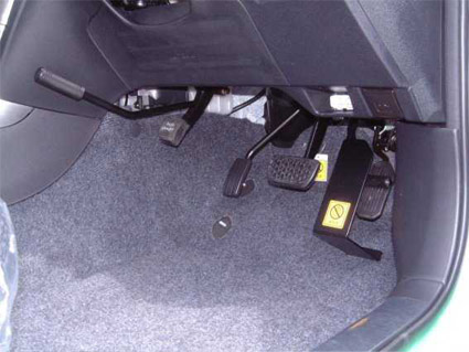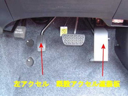 左アクセル装置を使用する際、誤操作を防止するため右側のアクセルペダルに遮蔽板取付使用します。 1台の車を身障者ドライバーと健常者のドライバーで共用する事が可能です。