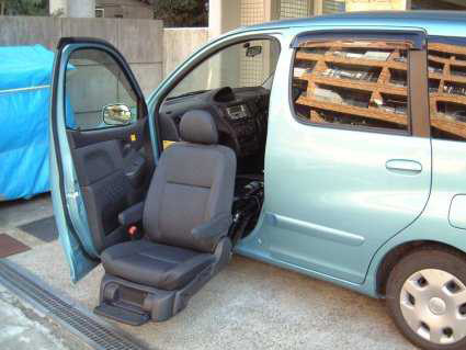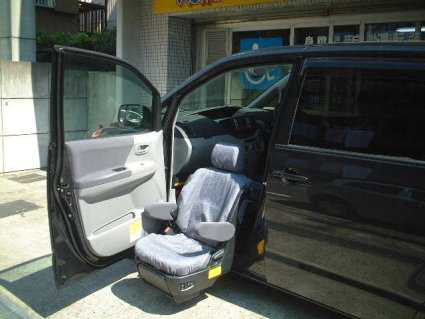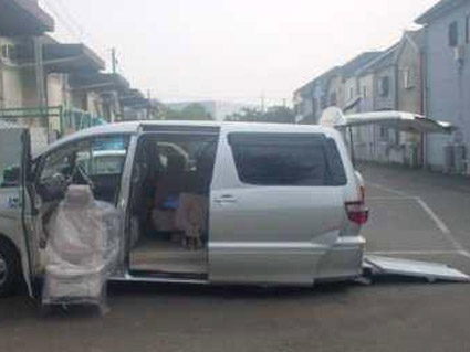 スロープ仕様車に助手席リフトアップシートを取付しました。病院など近くへの外 出は車椅子のまま、旅行など長距離ドライブはシートに座りゆったりとドライブを楽しめます。介護者の負担を軽減する事で介護される方も安心して外出する 事ができるようになりました。