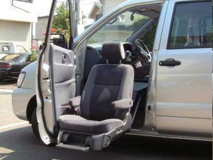 介護用車両助手席やセカンドシートが回転・スライド及び上下昇降することにより、自動車への乗降時の不自由さをサポートするものや、車いす電動3・4輪車を搭載時の負担を軽減するものなど、介護する側、される側両者の負担を軽減することができます。 |