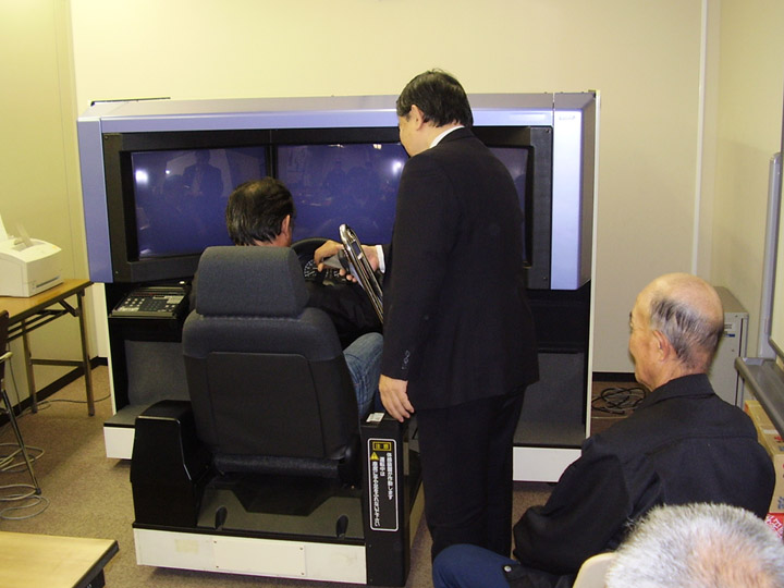 最近、事故を起こした方に、事故が起きやすい場面をドライビングシミュレータで体験していただき、危険な状況に陥らないための危険予測の大切さを体感していただきました。※この講習は、東京海上日動火災さんの協力を得て実施しています。