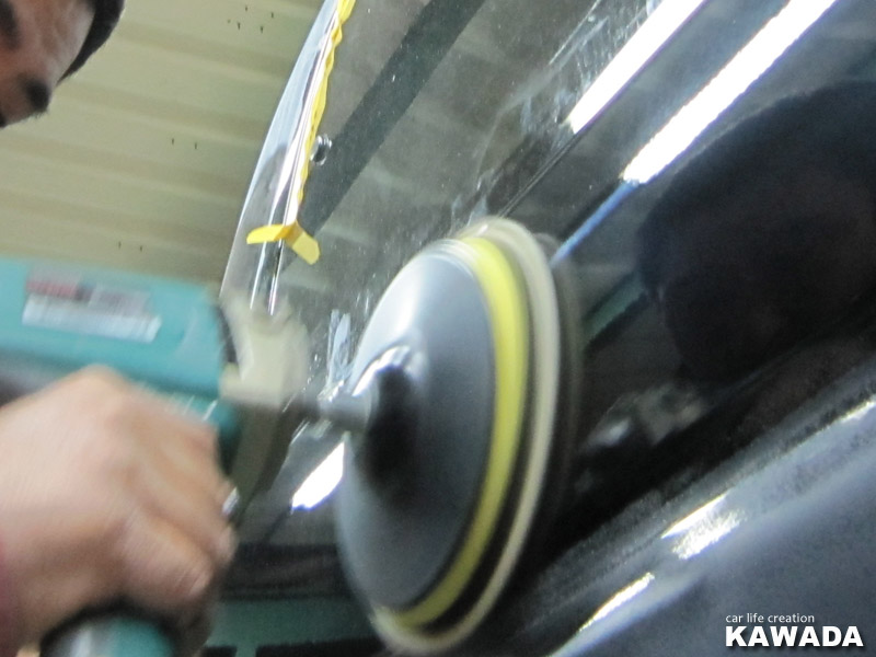 当社では、塗装ブースにて塗装を行いますので、埃や塵は付きにくいのですが、全てを除去するのは不可能です。そこで、ボディに付いた「塗装のぶつ」を除去し、肌を整えるために、磨き作業が必要となります。