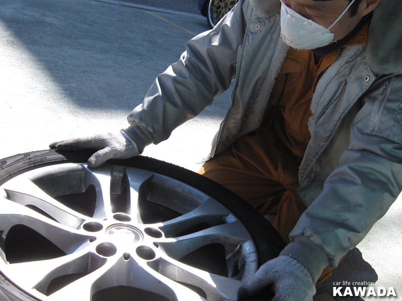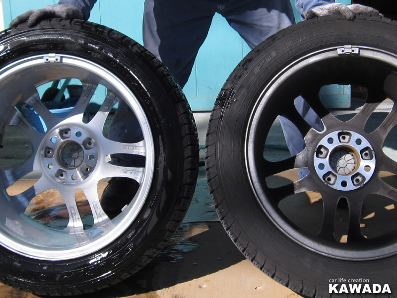 ネットで購入したホイールとタイヤを直送してください。タイヤとホイールを組み付ける前にホイールコーティングを施工します。タイヤが付いていないので隅々までコーティング可能です。さらに汚れが付いていないので余分な費用がかかりません。ホイールは施工後、代引きにて送付いたします。(※当社でもホイール、タイヤの注文承ります。)