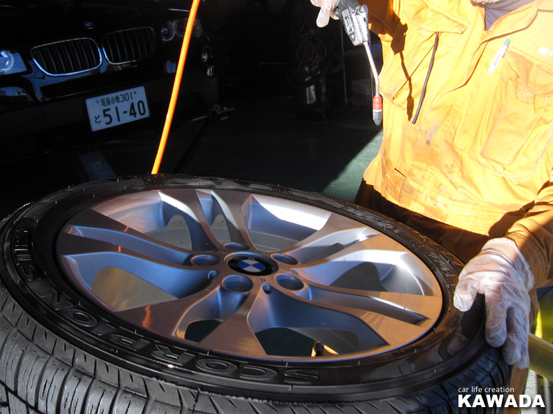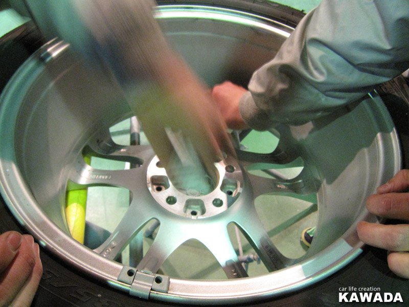 お客様がホイルを購入されたら、その足でホイールコーティングを施工をするパターンです。ホイールに汚れが付いていないので余分な費用がかかりません。