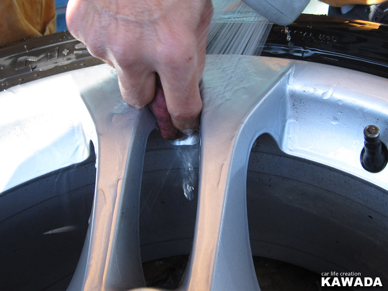- ・お客様が中古車を購入!納車前に中古車屋さんが車を持ち込み、ホイールコーティングを施工。